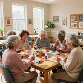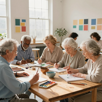 Structured sessions featuring light exercise, arts, technology lessons, and guest talks designed to enhance wellness and reduce isolation.