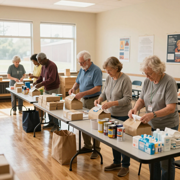 Opportunities for seniors to engage in meaningful volunteer work such as food pantry support, mentorship, and community clean-ups.